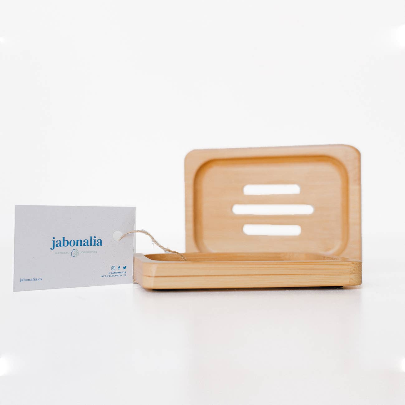 Jabonera de bambú 100% natural con base antideslizante y drenaje que nos ayuda a eliminar el exceso de agua.